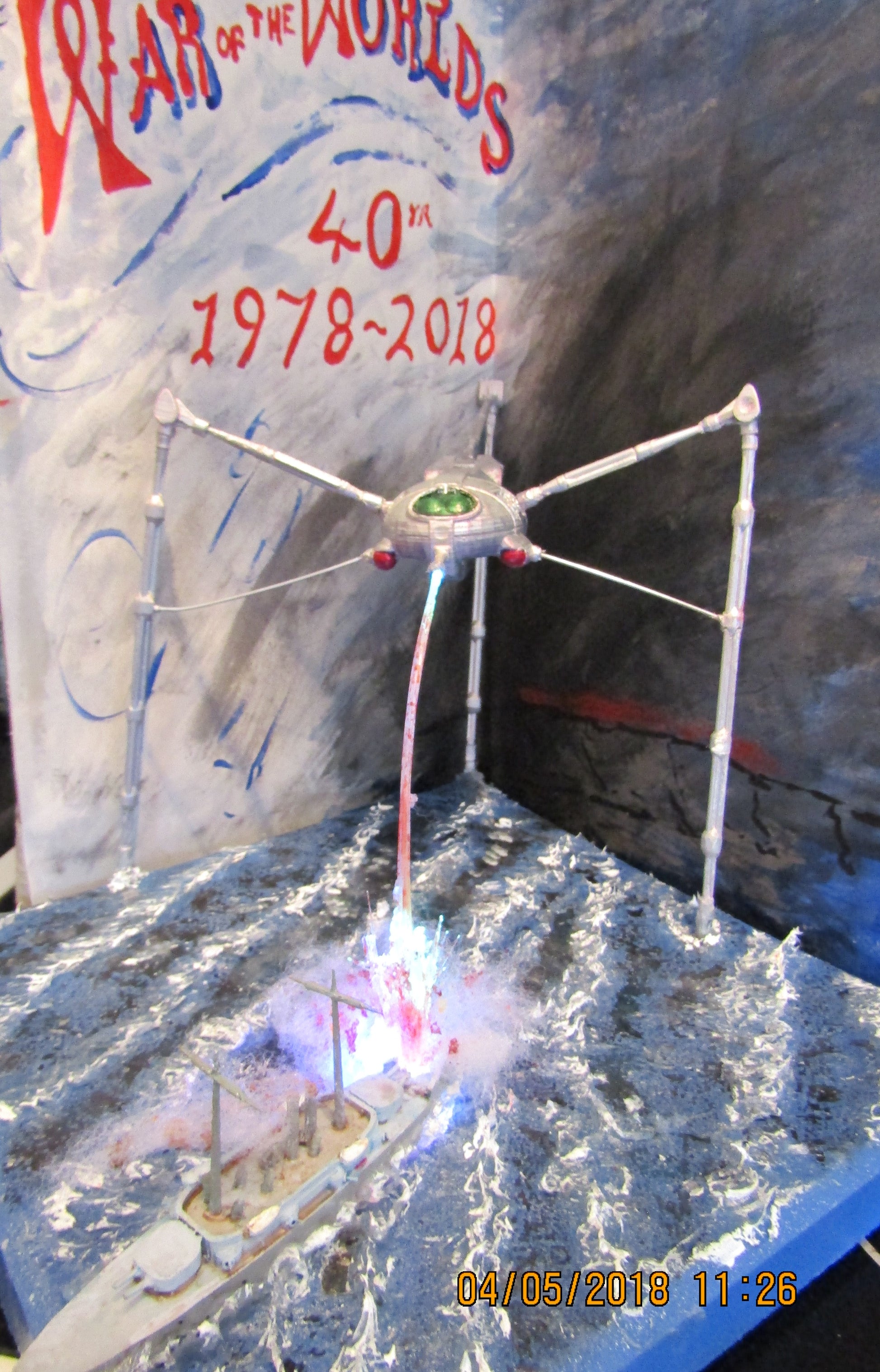 Exclusive, designed and built by DragonBadger Models. \n \nNew range of Models in honor of the 40th anniversary of the release of the Jeff Wayne Concept Album of the musical version of H.G. Wells War of the Worlds. \n \nMartian Tripod & Martian Harvester, inspired by the album artwork - available in game(approx 1:200, Z scale) and display ( 1:160, 10mm scale) sizes. \n \nHMS Thunderchild, a 3d printed 1:900 scale model of a Victorian Battleship, as seen in my diorama. \n \nDiorama set, A 10mm tripod, HMS Thunderchild, Textured base tile, colour changing fibre optic lighting kit (no backdrop), We are always trying to make our models as best as we can, so they are constantly under revision and changes made if necessary, so the illustrations may not always show the latest version. \n \nThis is a kit, unpainted, requiring assembly. paint and glue required, colours may vary pictures for illustration and are of the model or 3d renderings of the design which may vary as we constantly strive to provide the most accurate model we can produce. \n \n \n \nplease allow 7-21 days for production. limited stock so may have to be produced.